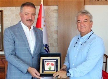 ETİK Başkanı ve TÜROFED Başkan Yardımcısı Mehmet İşler'e ziyareti ve plaketi için teşekkür eden Aşkın, "Terör ve Algı Yönetimi" kitabını imzalayarak armağan etti.