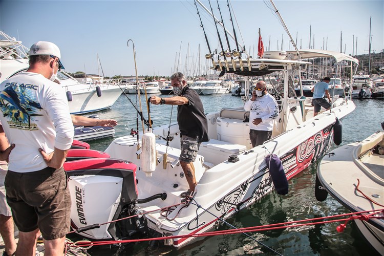 Teos Marina ev sahipliğinde gerçekleşen organizasyonda rüzgar, usta balıkçıların zor koşullar altında ustalığını sınayacak gibi görünüyor.