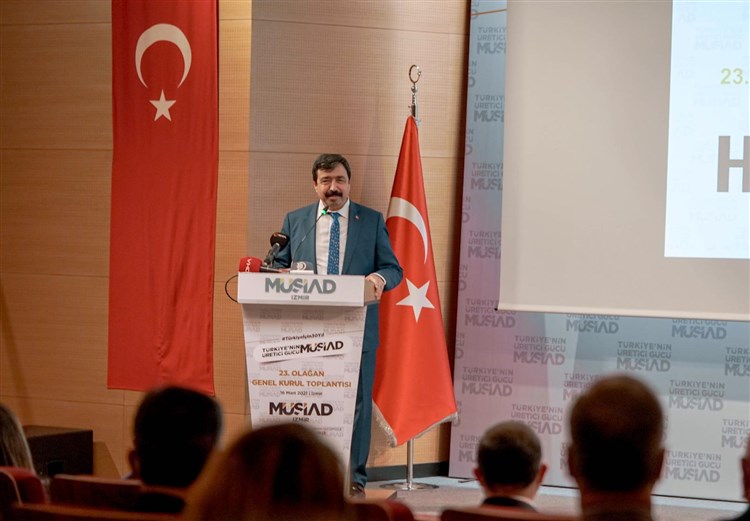 Müstakil Sanayici İşadamları Derneği (MÜSİAD) İzmir Şubesi, 23. Olağan Genel Kurulunu gerçekleştirdi. Bilal Saygılı Camii ve Külliyesi Ertuğrul Gazi Konferans Salonu’nda yapılan Genel Kurula, İzmir Vali Yardımcısı Fatih Kızıltoprak, MÜSİAD Genel Başkanı Abdurrahman Kaan, Ege Üniversitesi Rektörü Prof. Dr. Necdet Budak, İzmir Yüksek Teknoloji Enstitüsü Rektörü Prof. Dr. Yusuf Baran, İzmir Katip Çelebi Üniversitesi Rektörü Prof. Dr. Saffet Köse, Bakırçay Üniversitesi Rektörü Prof. Dr. Mustafa Berktaş, İzmir Demokrasi Üniversitesi Rektörü Prof. Dr. Bedriye Tunçsiper, AK Parti İl Başkan Vekili Ali Aslan, MÜSİAD Yerel Üst Kurulu Başkanı Ahmet Şekerli, MÜSİAD Üretim ve Ticaret Planlama Üst Kurulu Başkanı Dr. Oktay Dede, MÜSİAD Kadın Komite Başkanı Müge Öz, İzmir Esnaf ve Sanatkarlar Odaları Birliği Başkanı Zekeriya Mutlu, İl Milli Eğitim Müdürü Ömer Yahşi, Çalışma ve İş Kurumu İl Müdürü Kadri Kabak, Sanayi ve Teknoloji İl Müdürü Engin Bişar, Aile ve Sayal Politikalar İl Müdürü Nesim Tanglay, İzmir Ticaret İl Müdürü Şahin Ersü, İzmir İl Sivil Toplumla İlişkiler Müdürü Turgay Esen, İl Müftü Vekili Metin Akbaş, Dokuz Eylül Üniversitesi Hukuk Fakültesi Dekanı Prof. Dr. Refik Korkusuz, STK temsilcileri ve MÜSİAD İzmir Şubesi üyeleri katıldı.