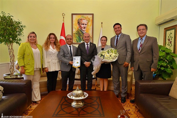 İzmir Büyükşehir Belediye Başkanı Tunç Soyer, 2024 yılı Dünya Kongresi yarışında ipi göğüsleyen Skal International'ın İzmir yöneticilerini makamında ağırladı.
