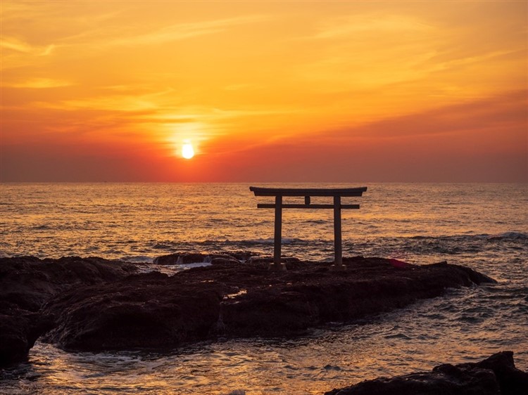Ibaraki Vilayeti'nin Oarai Isazaki-jinja Tapınağı, Yeni Yılın ilk ışınlarını karşılamak için popüler bir mekandır. Kamiiso-no-Torii'nin arkasındaki Pasifik Okyanusu üzerinde yükselen güneş, tapınağın kayaların üzerinde oturan, gökyüzüne karşı siluetlenmiş kapısı güzel bir manzara ve önümüzdeki on iki ayı dört gözle beklemenin ilham verici bir yoludur.